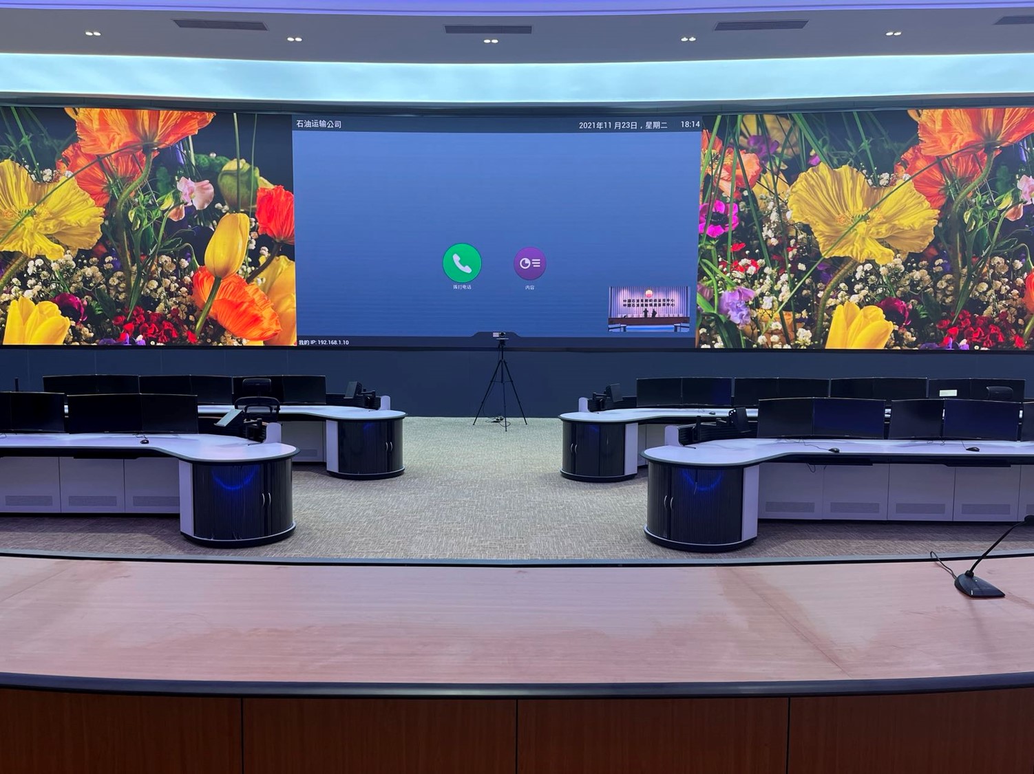 中國石油運(yùn)輸公司調(diào)度中心項(xiàng)目位于北京順義和新疆烏魯木齊兩地,兩地調(diào)度中心各建1套1.56mm的LED監(jiān)控大屏,并重點(diǎn)對兩地視頻會議功能進(jìn)行升級,由原來模擬視頻會議終端升級為高清終端,實(shí)現(xiàn)雙路高清攝像機(jī)信號的實(shí)時(shí)切換及雙流顯示。保證兩地調(diào)度中心會場互聯(lián)互通,實(shí)現(xiàn)視頻交流,通過集團(tuán)M